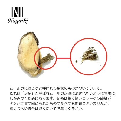 ※ムール貝にはヒゲと呼ばれる茶色っぽい糸状のものがついています。